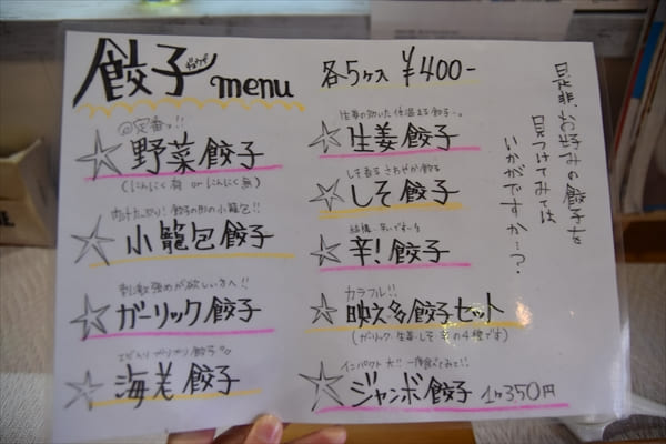 餃子のメニュー(クリックして拡大)