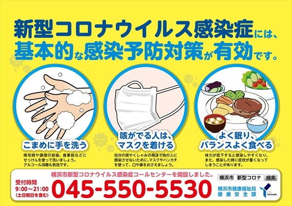 基本的な感染予防対策が有効(横浜市新型コロナウイルス感染症ポスター)