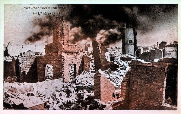 絵葉書『大正十二年九月一日横浜市大震災 居留地の惨状』(横浜市中央図書館所蔵)