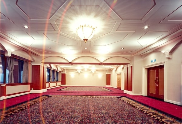 エントランスの左側にある黒っぽい扉が寺院の入り口