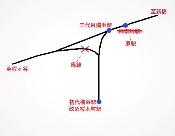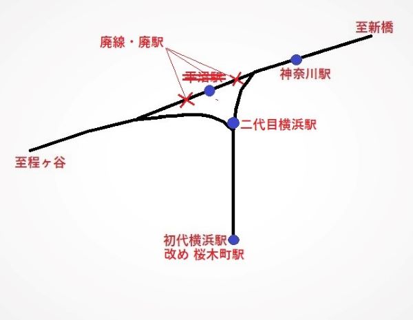具体的には、三代目横浜駅の開業と同時に廃線となった、二代目横浜駅と程ケ谷駅間の東海道本線のことだ。