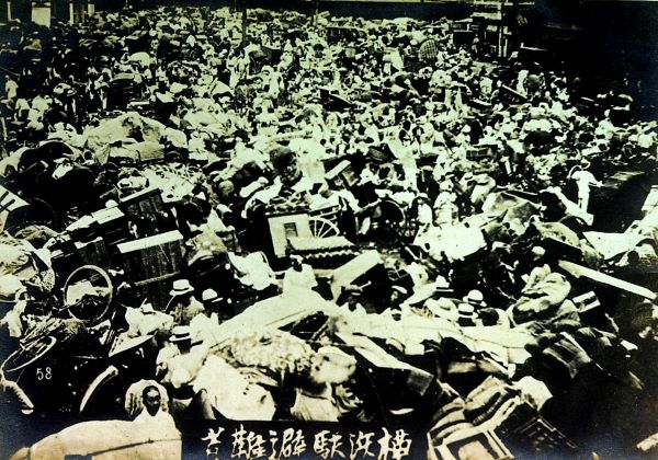 下の写真は、持てるだけの私財を抱えた避難民で埋め尽くされ、混乱の極みに達した震災直後の横浜駅の様子をリアルに伝えている。