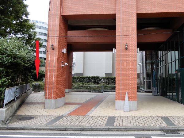 旧東横線高架橋沿いの国道16号線側から高島町交差点を望むと、交差点の目の前に大きなマンションがそびえている。そのマンションの敷地内に二代目横浜駅の遺構はあった。