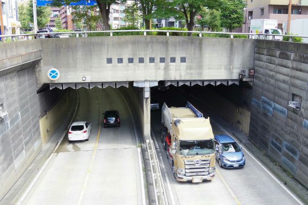 国道1号線のアンダーパスとして高島トンネルが通る