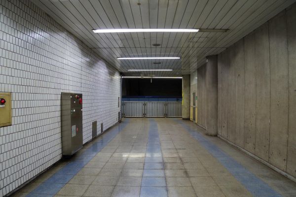 開削工法とシールド工法の境目は通路からすぐに見える