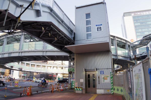 また、相鉄・東急直通線の工事にともなって円形歩道橋の一部箇所には仮設階段が設けられていたが、出入口の建設に合わせて仮設階段が撤去され、元々あった階段の復旧も行われている。2番出入口と3番出入口付近でそれが見られ、環状2号線に面した歩道から歩道橋に上がる途中まで、階段の建設が進んでいる様子だった。