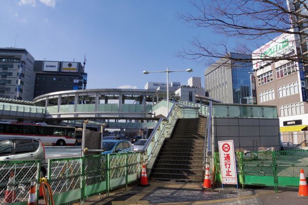 1番出入口に接続する階段が駅前の歩道から見えるようになった