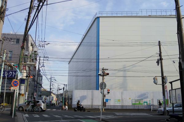 どれくらいかというと、綱島駅北口からセブンイレブンのある方へ曲がり、綱島街道に出ると、白い仮設壁で覆われた建物の様子が見えるほど近い。なんなら綱島街道に出ようと歩きだしたところで工事中の仮設壁が目に入るくらいだ。