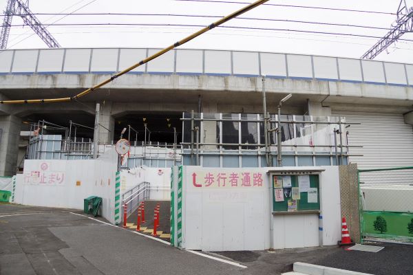 建物の仮設壁以外、仮囲いで覆われた区画内に目立つ構造物はまだなかったが、地上部では駅の他にも、再開発事業によって商業・公益・住宅の複合ビルが建設される予定なので、綱島駅・新綱島駅前の景観にも大きな変化が生まれるだろう。