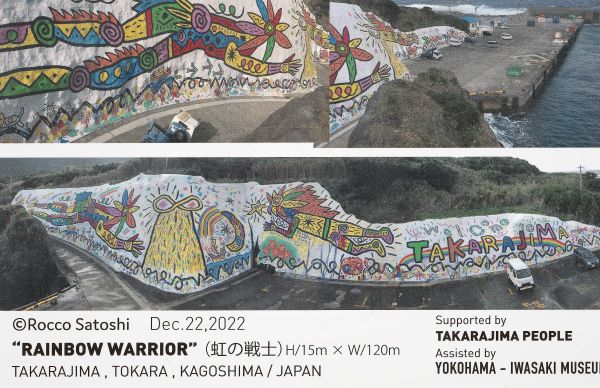 ロコさんは、この68世帯131人(2018年3月末現在)が暮らす小島で、昨年(2022年)10月から12月まで、子どもも含む島民たちと一緒に、島の歴史や生活を織り込んだ巨大な壁画を制作していた。