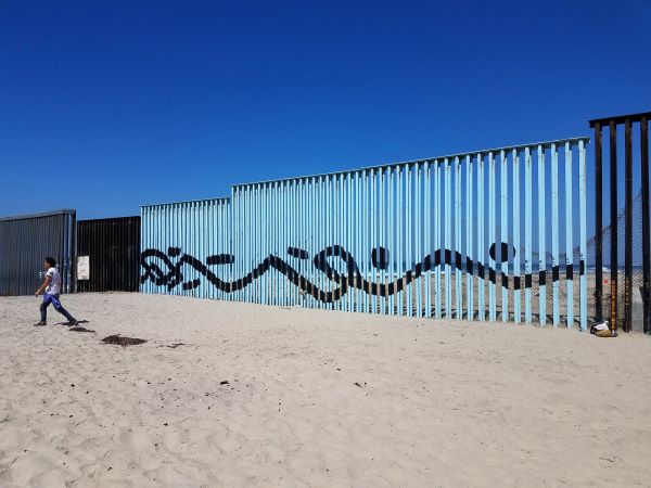 2018年、トランプ政権下のアメリカとメキシコの国境の壁に壁画を描くロコさん(photo© Rocco)