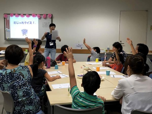 現在、協会にとって特に比重が高まっているのが、この分野での活動だそうだ。協会は2014(平成26)年9月に発足したが、その7ヶ月前の2月に「親子だじゃれ教室」が初開催された。