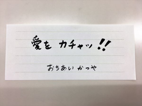 「おちあい かつや」さんを並べ替えると「愛をカチャッ」になる。