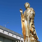 南武線武蔵溝ノ口~津田山間の車窓から見える、黄金色の大仏?お釈迦様?が気になります。立川方面行き電車の左手に一瞬だけ後ろ姿が見えます(はんぐん丸さん)