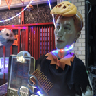 奇妙なマネキンが置かれてる白楽にある「ニコニコバーるんるん」というお店がキニナル。お笑い芸人の長州小力から開店祝いの花が送られているよう。調査を!(のりたつさん)