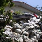 磯子区上町の米軍施設近くに残る橋梁と思われる橋台。1956年(昭和31年)に米軍により撮影された航空写真には、川岸に至る軌道または道路のようなものが写っていますが、これは何?(ペテン師さん)