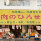 三ツ境駅前にある『肉のひろせ』。『肉』という割に、店頭には野菜ばかりが置いてあるのはどうして?(TiAさんのキニナル)
