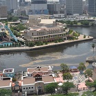 みなとみらいのカップヌードルミュージアムパーク周辺や汽車道にかけての海面に謎の濁りが。これは一体なに?(はまれぽ編集部のキニナル)