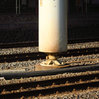 JR新子安駅を跨ぐ跨線橋の橋脚が根元のところで極端に細くなっています。これで強度的に問題ないんでしょうか。何のためにこの様な構造になってるんでしょうか。気になります。(N.G.さんのキニナル)